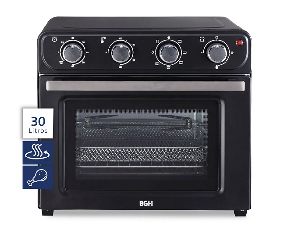 Un horno todo en uno para una cocina más versátil: Función Air Fryer, cocina sin aceite. Rotisserie, ideal para preparar pollos y carnes doradas de manera uniforme. Convección y grill, distribuyen el calor homogéneamente para resultados crocantes y sabrosos. Función de descongelado y tostado. Potencia: 1600W. Termostato: 0 a 230 grados. Accesorios incluidos: bandeja asadera y rejilla metálica, bandeja portamigas, Kit de rotisserie, Canasta freidora, Pinza para bandeja. Medidas (cm): 42 cm de ancho, 39,5 cm de alto y 40,2 cm.