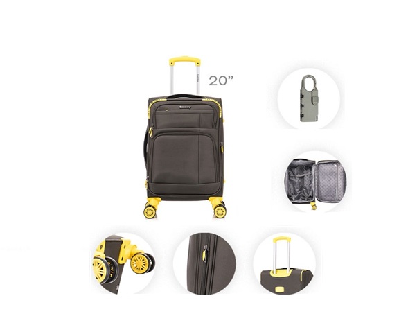 Modelo: 16394. Diseño semi rígido y estructura robusta, brindan una excelente protección para el equipaje. Candados incluidos, ruedas dobles 360 spinner, sujeción interna, cierre expansible, carro resistente. Composición: 100% Nylon.Medidas: 20p:49x32,5x21